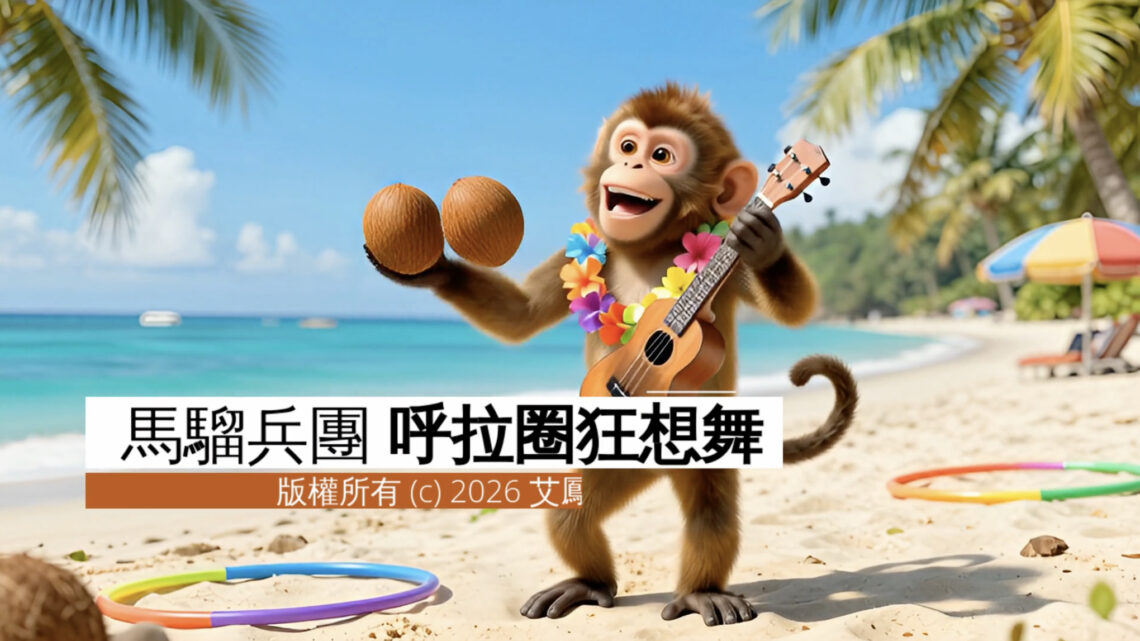 馬騮兵團 : 呼拉圈狂想舞 (最無厘頭的廣東話歌曲) 👉笑到喊😂 2026-02-05 By 天上雲 0 歌曲中文名稱: 馬騮兵團 – 呼拉圈狂想舞 (最無厘頭的廣東話歌曲)Song Name: Monkey Corps – Hula Hoop Fantasy Dance作者(作曲及作詞): 艾鳳Author: Ai Feng製作團隊: AiTV 製作 版權所有 (c) 2026 AiTV 艾鳳 咖喱專頁 影片收集 書籤 (0) 請登入後才能加入書籤 關閉 使用者名稱或電子郵件地址 密碼 保持登入 No account yet? Register 下載二維碼 🠋 觀看次數: 153 計數器 (分享 | 讚好 | 推薦)TweetSpread the love (分享 傳播愛) 文章導覽 Previous PostPrevious 阿爾及利亞AI主權與人才躍升戰略商業計劃書(草稿)Next PostNext 人工智能賦能教育:學校發展計劃 專業支援計劃書