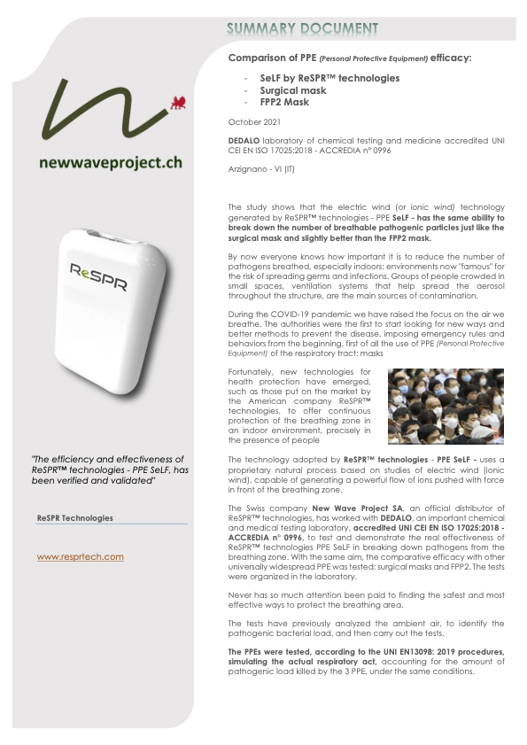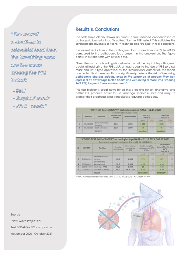 義大利出了 Self 與 N95 口罩的比較報告,Self 效能比 N95口罩要佳,等同於手術口罩