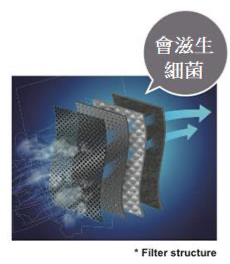 過濾器本身也有成為細菌和黴菌温床的風險這方面的一個例子說明是許多空調在使用一 段日子後在內部生長出很多黴菌的原因。