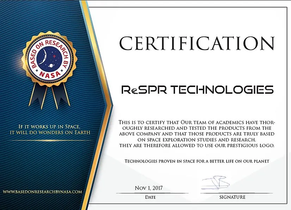 ReSPRNCC 量子技術 經過 NASA 附屬機構的測試證明,ReSPR 的產品基於太空站空氣淨化系統技術。才允許使用 NASA 享有盛譽的標誌,該標誌 只允許用於空氣淨化行業的頂級產品