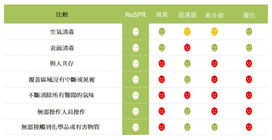 ReSPR 與其他殺菌方式在不同場景的效果比較